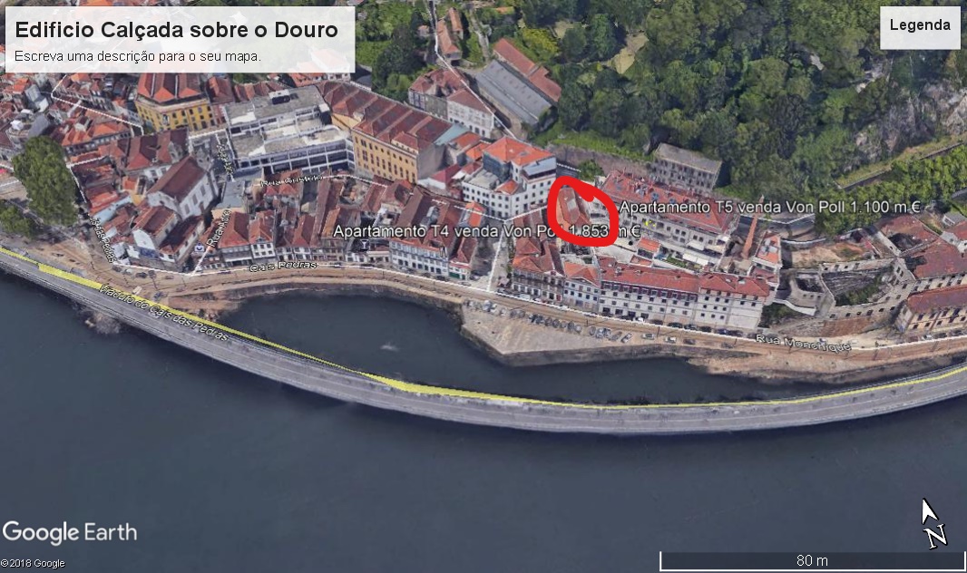 Descrição Prédio na Baixa do Porto Junto ao Rio Douro com 352 m2 para reabilitar `será possível ampliar para a construção de 6 apartamentos T1 e T2
